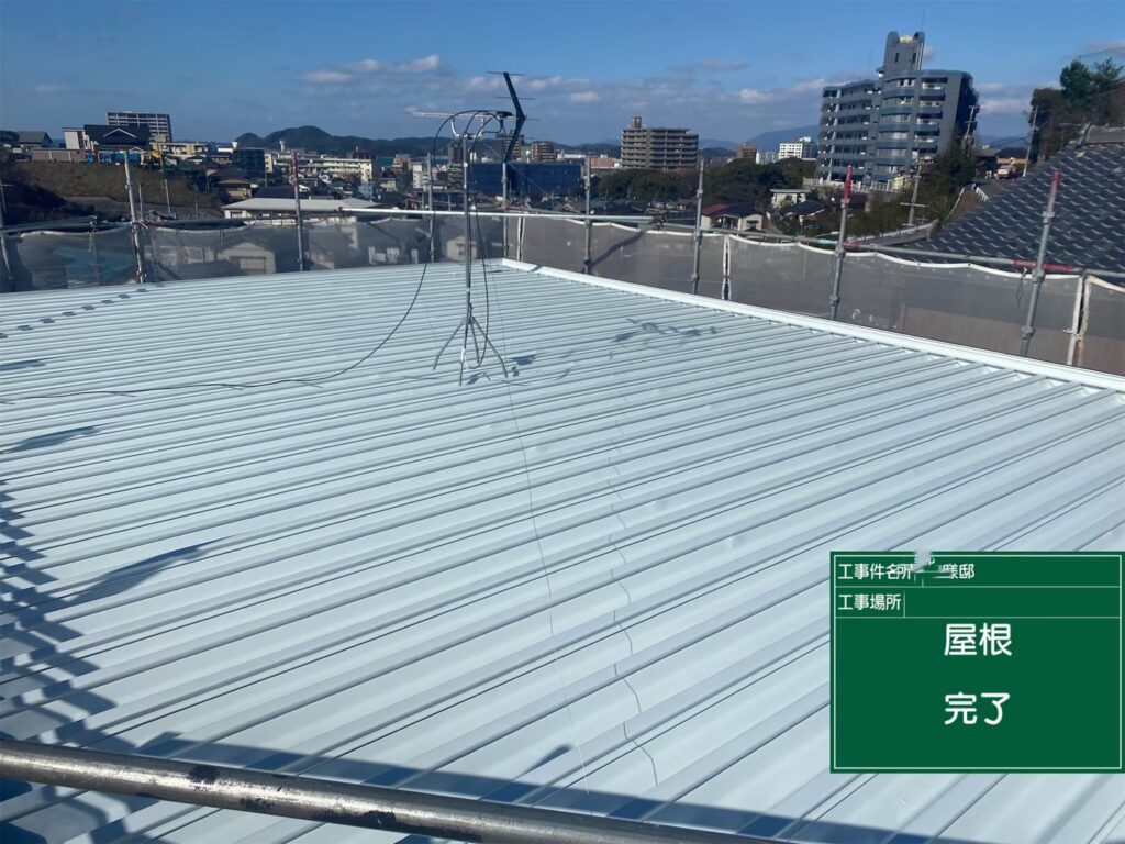 5. 下関市長府松小田東町にて築10年の金属屋根に遮熱塗料をエアレスで吹付けしました