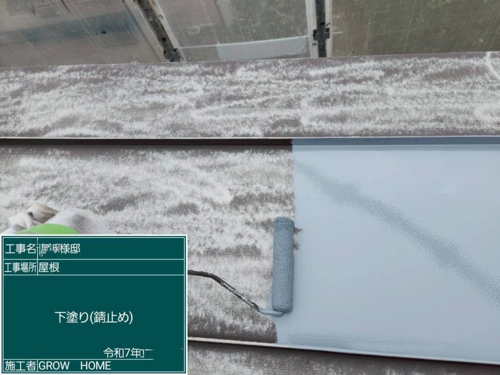 その後、金属専用の下塗り材「サーモテックメタルプライマー」を使用して錆止め塗装を施しました。