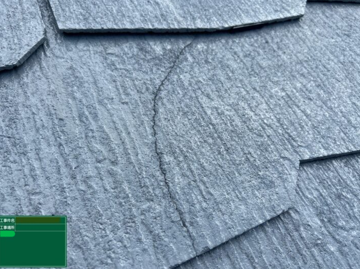 ひび割れから雨水が浸入し、屋根材の腐食や雨漏りの恐れがあります。